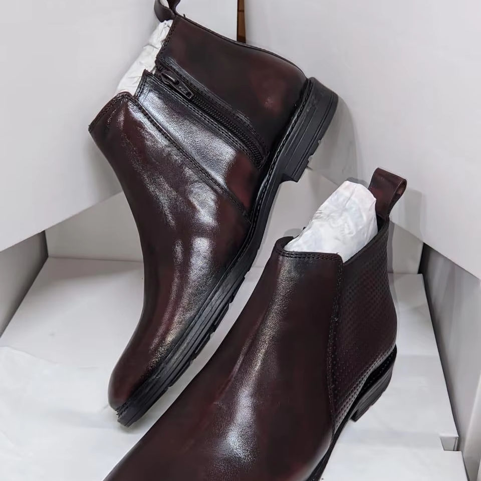 รองเท้าบูทเชลซีของผู้ชายทำด้วยมือคุณภาพสูงรองเท้าลำลองระบายอากาศและสวมใส่สบายสไตล์อินเทรนด์สำหรับฤดูหนาวอินเดีย
