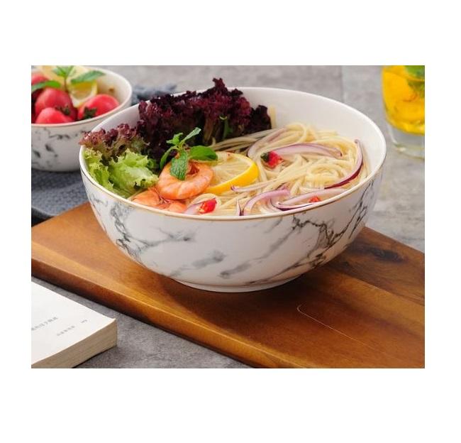 ชามหินอ่อนบนโต๊ะอาหารเป็นมิตรกับสิ่งแวดล้อม