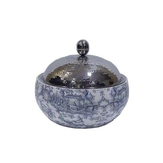 หม้อสแตนเลสพร้อมฝาปิดทำจากแก้วและไม้ด้านบนดีไซน์หรูหราทำด้วยมือ