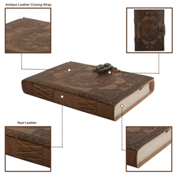 สมุดโน๊ตหนังแท้สำหรับผู้ชายและผู้หญิงสมุดโน้ตหนังแท้ดีไซน์จักระแบบดั้งเดิมงานแฮนด์เมด