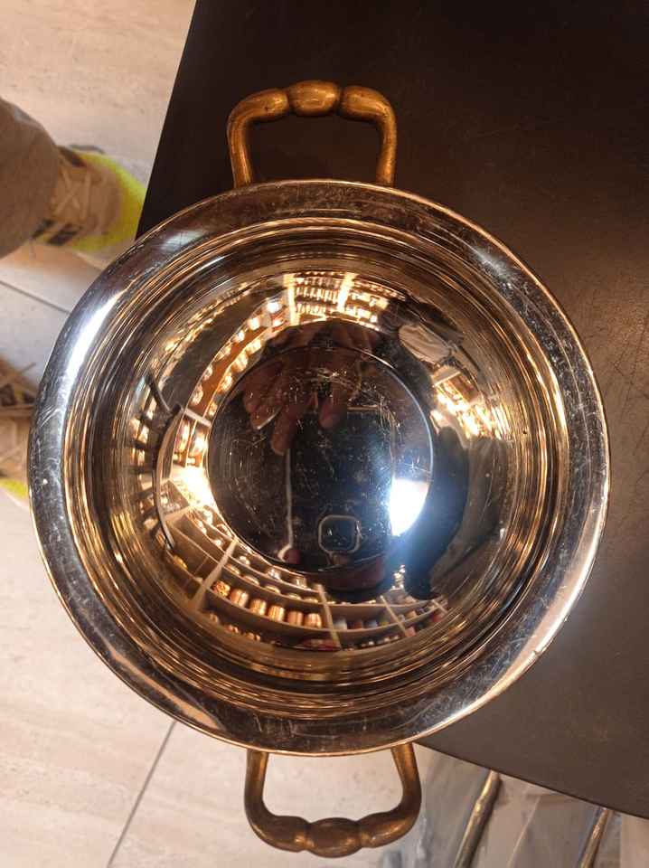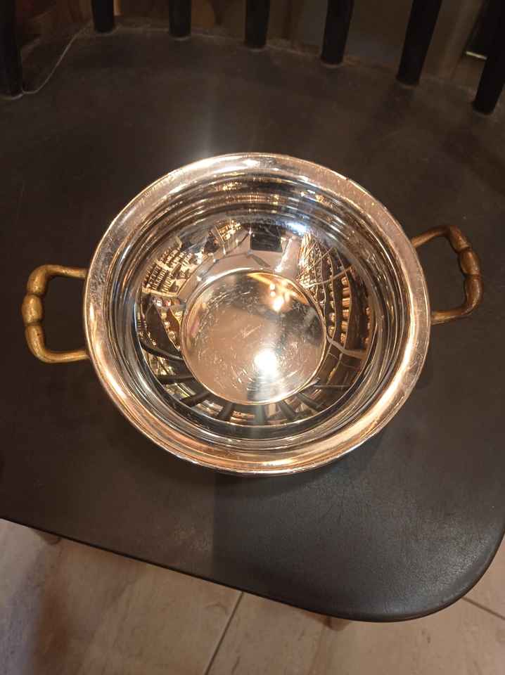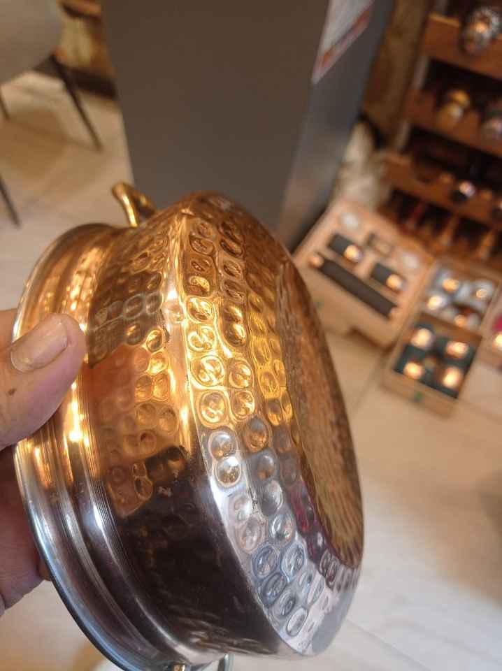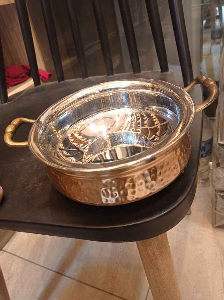เครื่องครัวทองแดงแบบดั้งเดิมทำด้วยมือกระทะย่างอินเดียกระทะทองแดง