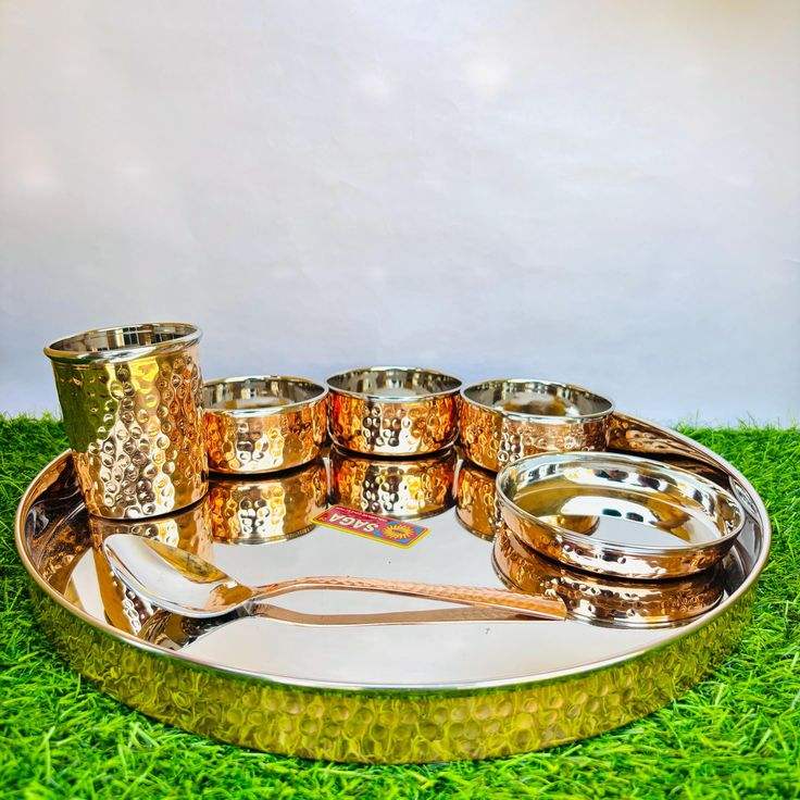 เครื่องครัวทองแดงทำมือแบบดั้งเดิม กระทะและจานย่างอินเดีย ทำจากโลหะ แฮนดี้