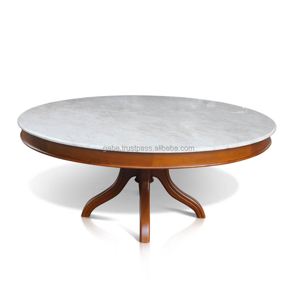 ท็อปโต๊ะอาหารทรงกลมไม้เนื้อแข็ง ดีไซน์ดั้งเดิม ทำมือ พร้อมคุณสมบัติพับได้ หรูหราด้วยหินอ่อน สำหรับบ้านสไตล์ฟาร์มเฮาส์ ส่งตรงจากอินโดนีเซีย