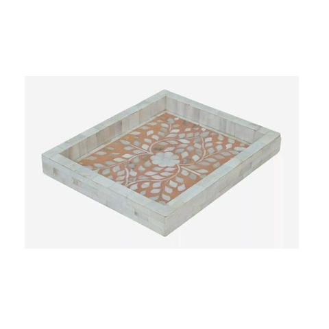 ถาดไม้ลายดอกไม้แบบดั้งเดิมทำมือ พร้อมลายฝังกระดูก ตกแต่งอย่างเป็นมิตรกับสิ่งแวดล้อม สำหรับชา กาแฟ ขนม และอื่นๆ