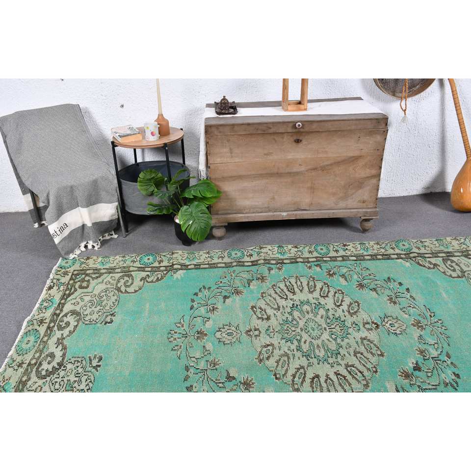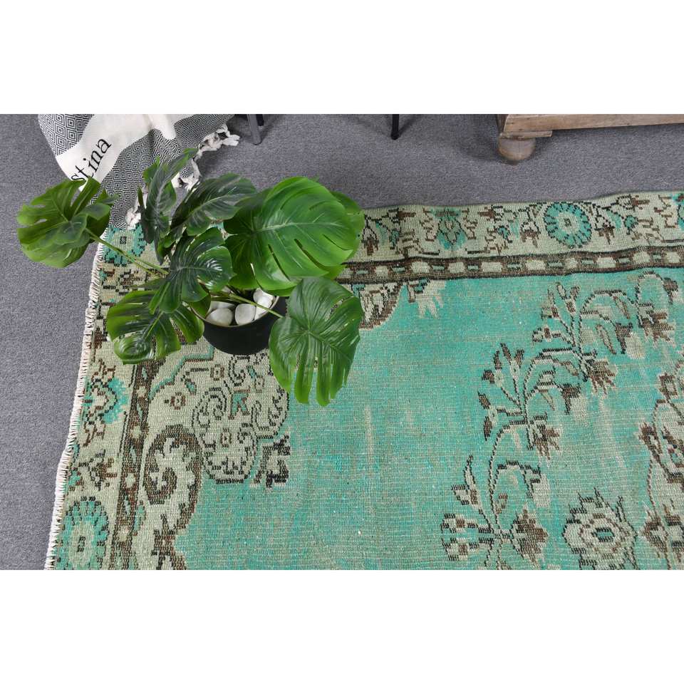 พรมสีเบจตุรกี8.4ft สีเขียวแบบทำด้วยมือลวดลายนามธรรมขนาดใหญ่4.9 X สำหรับโถงทางเดินหรือข้างเตียงสำหรับวัยรุ่น