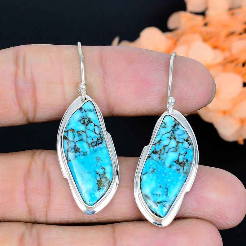 ต่างหูพลอยเทอร์ควอยซ์ทำมือ เงินแท้ 925 ของขวัญสุดหรูสำหรับผู้หญิง