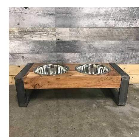 ชามสเตนเลสสำหรับสัตว์เลี้ยงยกสูง2ชามทำจากไม้เป็นมิตรกับสิ่งแวดล้อม