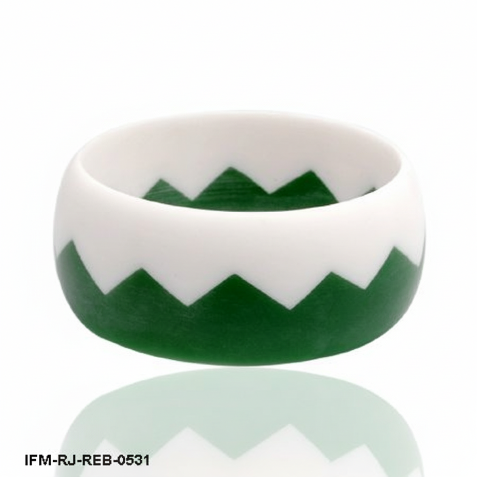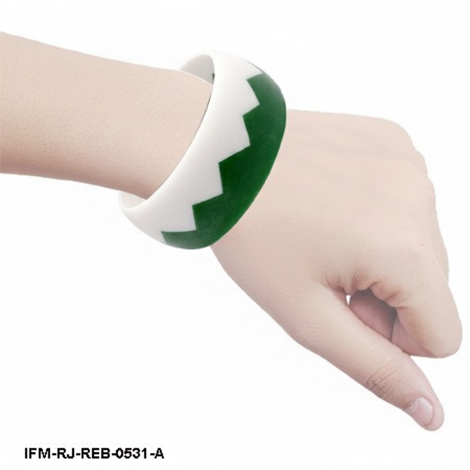 กำไลข้อมือเรซิ่นทำมือสองสี ดีไซน์เรขาคณิตทันสมัย ลายซิกแซก สีเขียวป่าและสีขาว เครื่องประดับสไตล์เรโทร