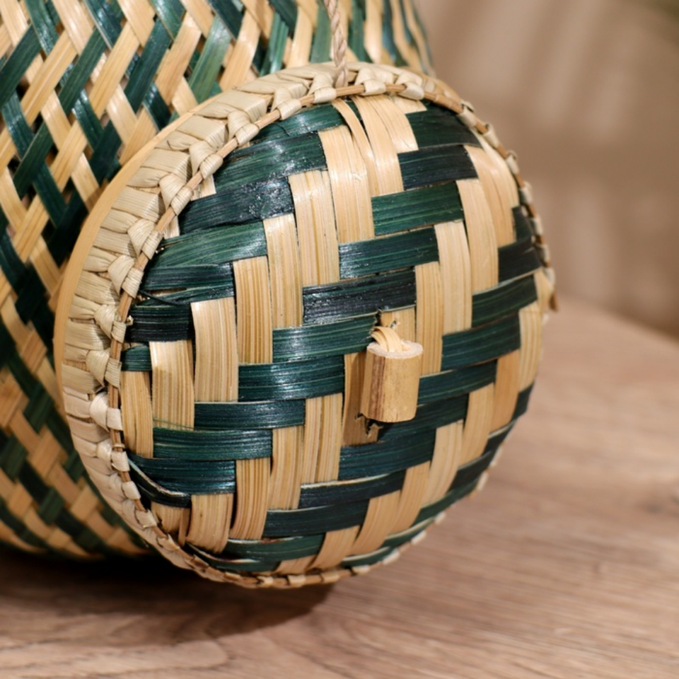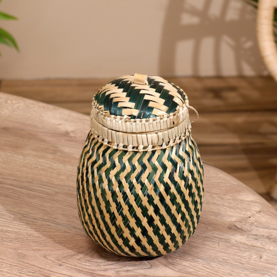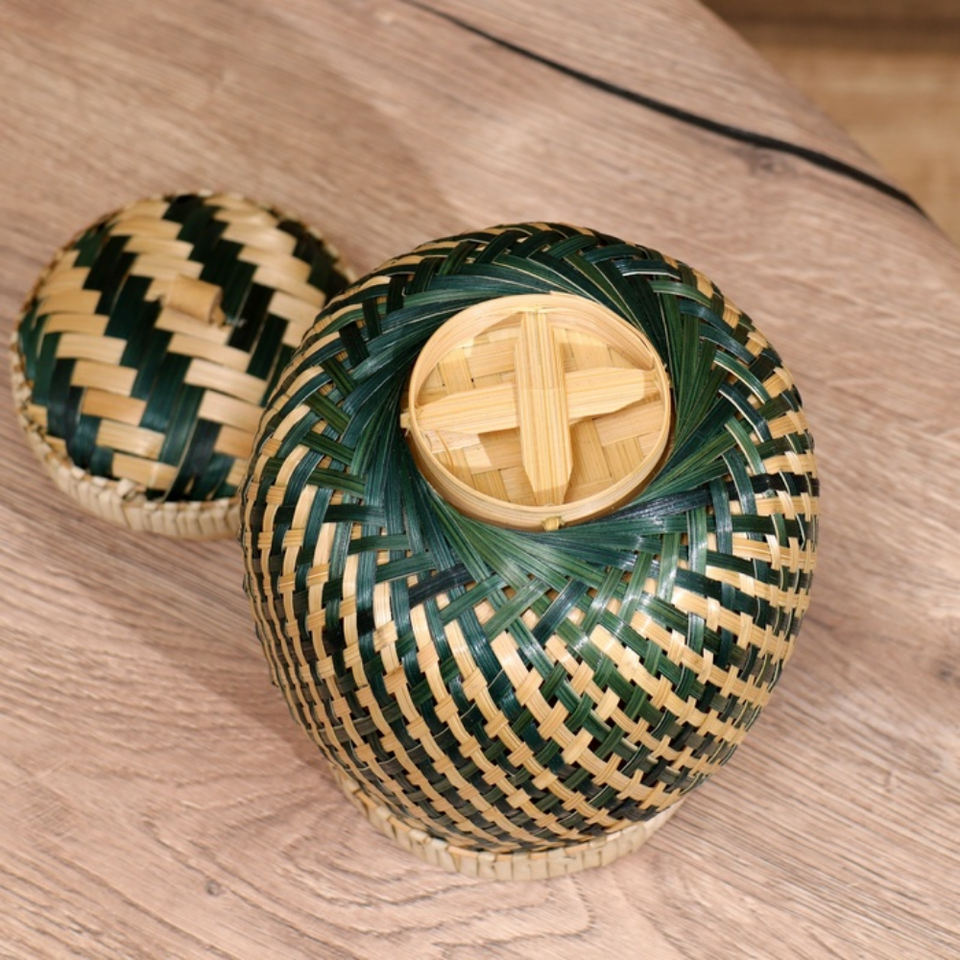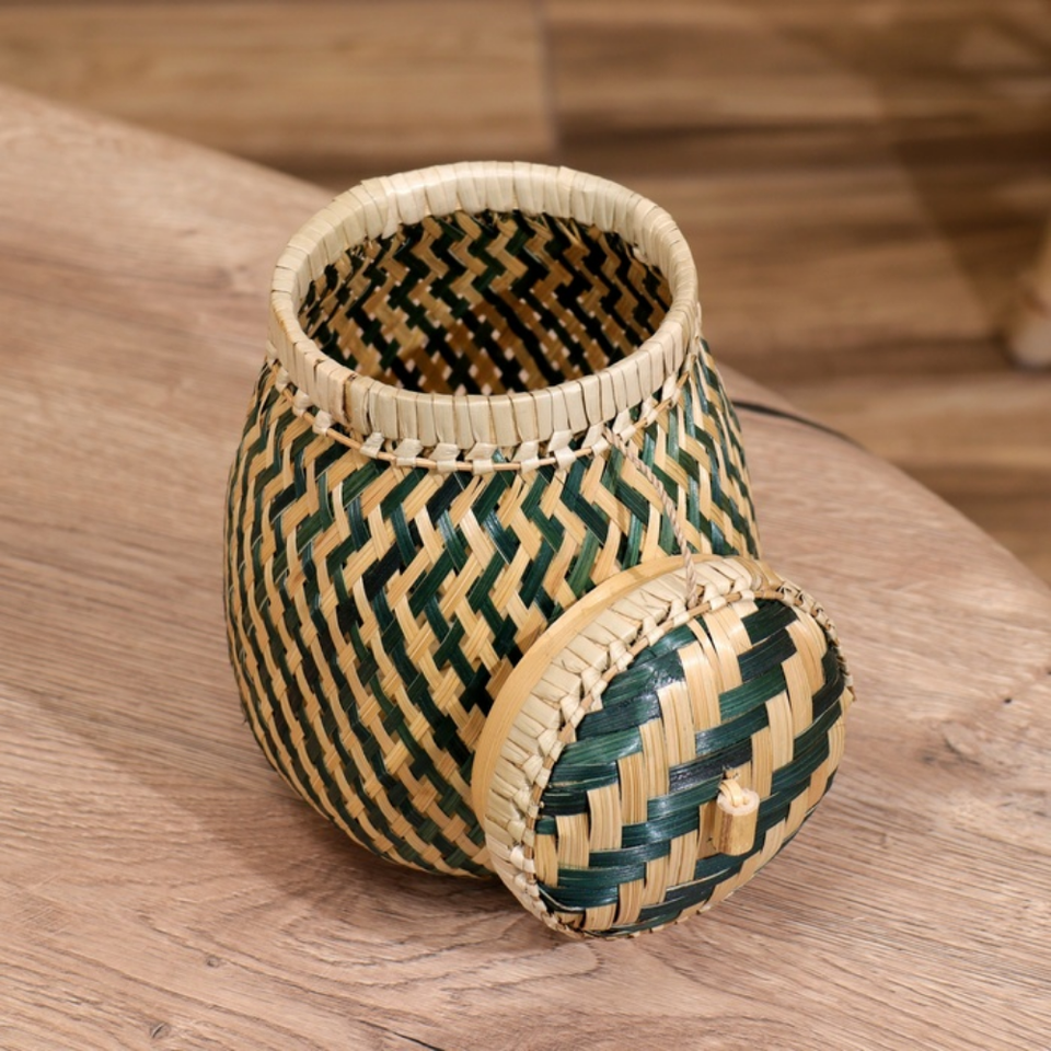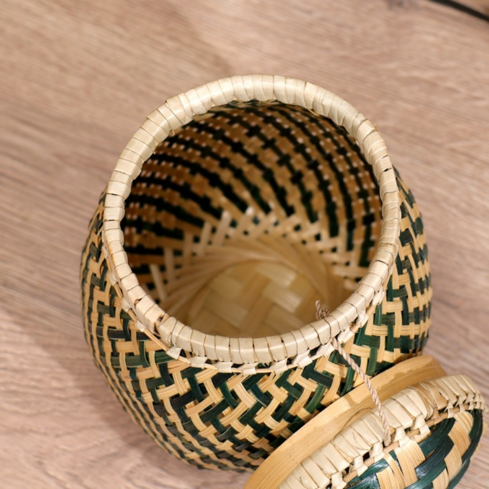 กล่องเก็บของไม้ไผ่ทำมือสองสีพร้อมฝาปิด / กล่องไม้ไผ่สานตกแต่งลายตัดกัน