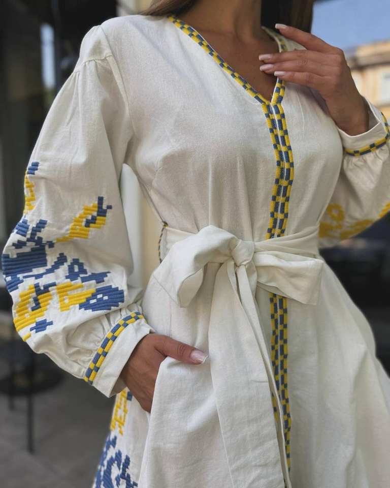 ชุดยูเครนทำมือปักลายข้าวสาลีสีขาวชุดปักหมุด vyshyvanka แบบดั้งเดิมของขวัญเครื่องแต่งกายปัก