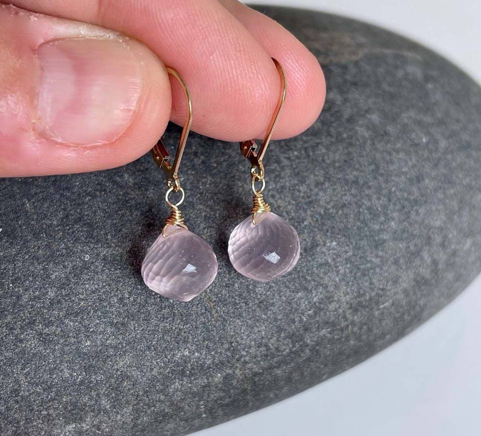 ทำด้วยมือรูปทรงกระบอกเดียวกับการตั้งค่า CZ โรสควอตซ์อัญมณีตุ้งติ้งดีต่างหูขนาด10มม. กรอบ925เงินสเตอร์ลิงชุบทอง