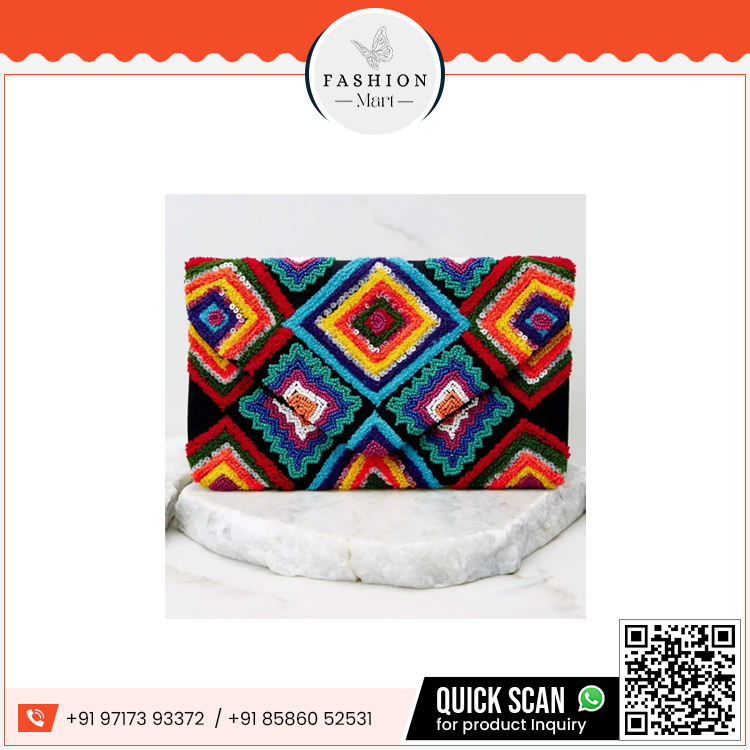 Handmade Unique Rainbow Beaded Clutch Fashion-Forward Evening Bag for Daring Individuals