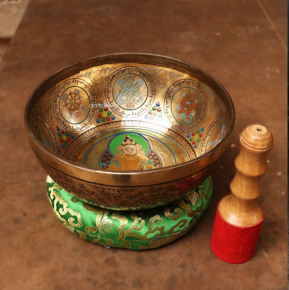 ชามร้องเพลงพร้อมกองหน้าไม้สำหรับฝึกโยคะบำบัดเสียงใช้งานได้อเนกประสงค์ทำด้วยมือ