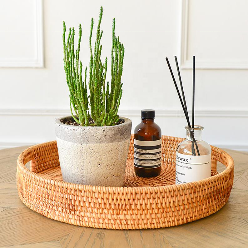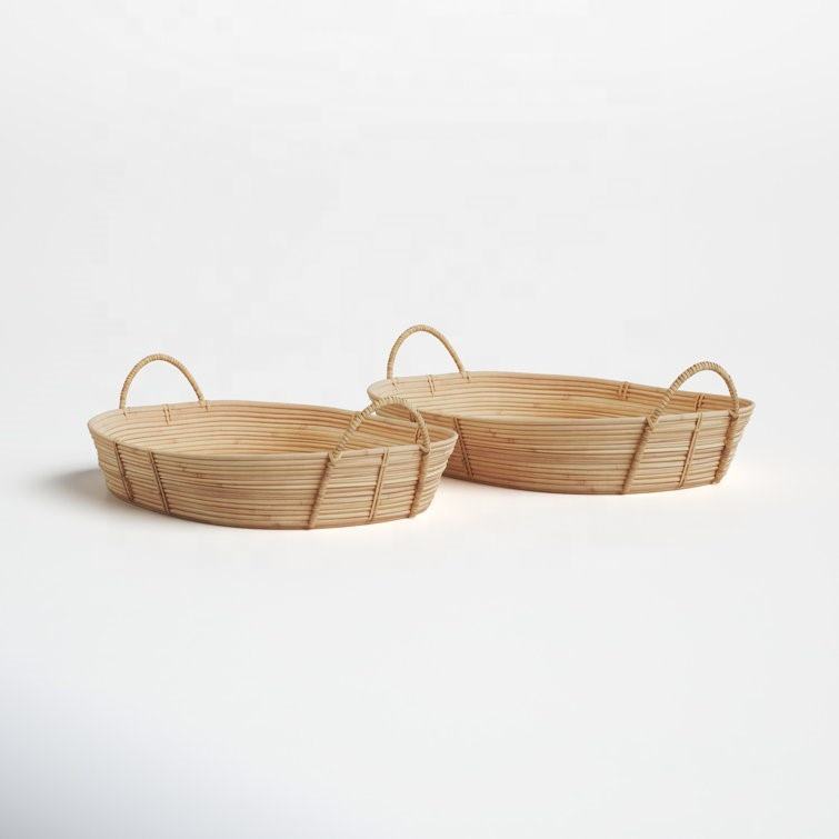 แฮนด์เมดหลากหลายขนาดหวายให้บริการถาดร้านอาหารถาดใช้อาหารที่มีด้ามจับโลโก้ที่กำหนดเองบรรจุภัณฑ์เวียดนามผู้ผลิต