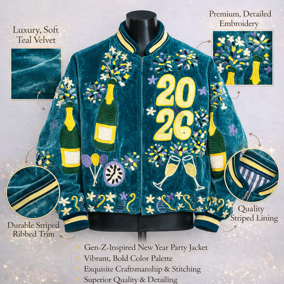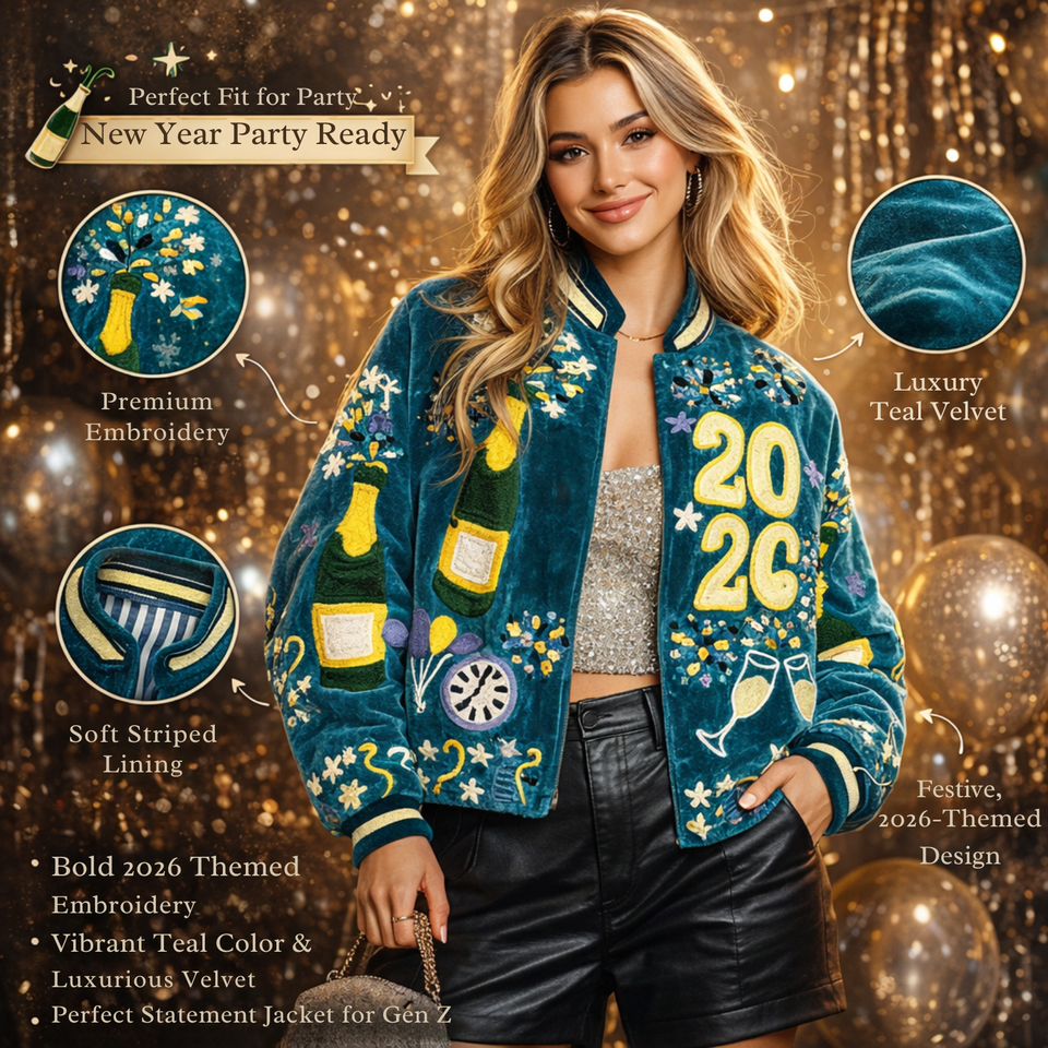 เสื้อแจ็คเก็ตกำมะหยี่ทำมือ ซับในผ้าฝ้าย ปักลายปี 2026 สำหรับผู้หญิง สวมใส่ในงานปาร์ตี้ ทรงบอมเบอร์