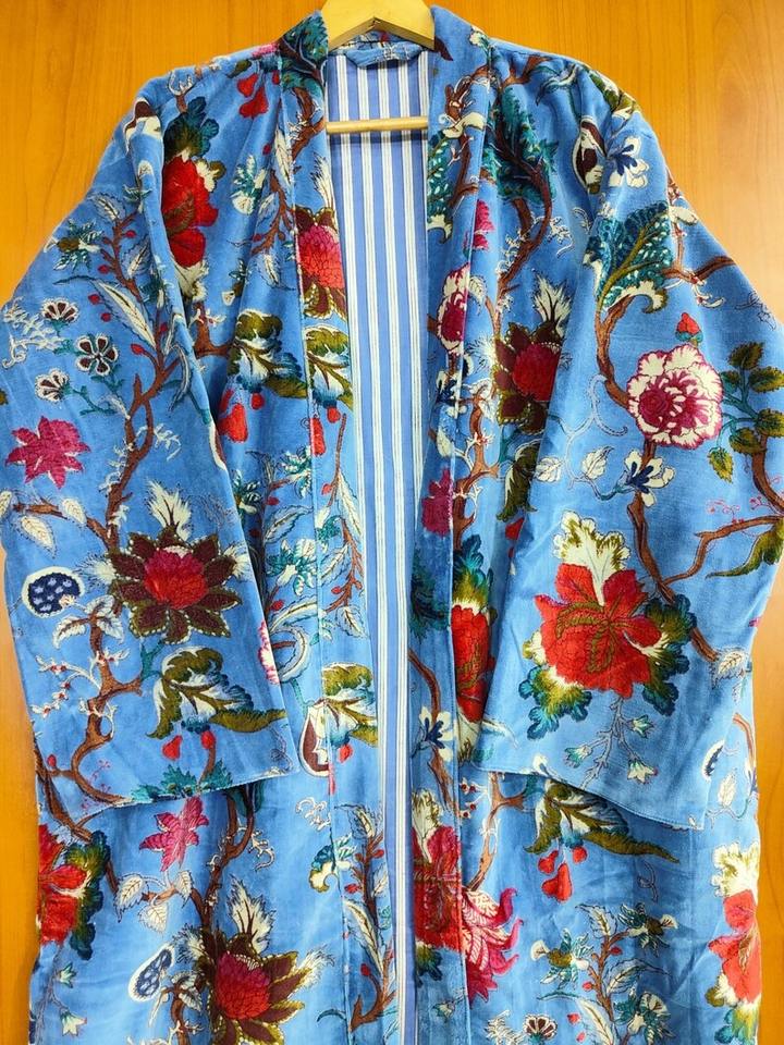 ชุดกิโมโนกํามะหยี่แฮนด์เมด, ชุดกิโมโนกํามะหยี่พิมพ์ลายดอกไม้, ชุดกิโมโนกํามะหยี่ผ้าฝ้ายยาว, ชุดคลุมฤดูหนาวนุ่ม, ชุดกิโมโนฤดูหนาวของขวัญสําหรับ h