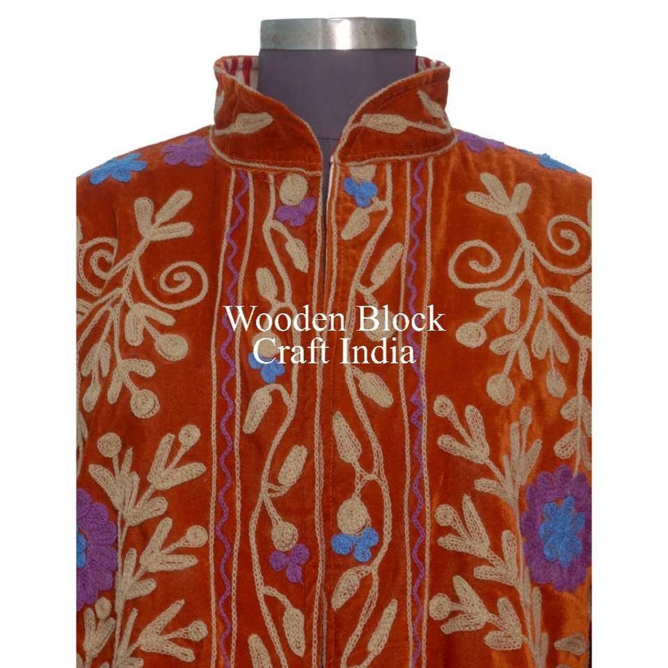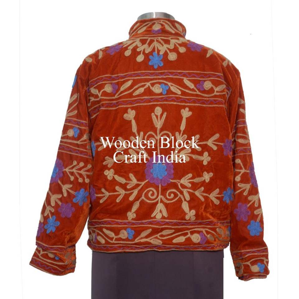 เสื้อคลุมกำมะหยี่ถักมือ นุ่ม ระบายอากาศได้ดี ซับในผ้าฝ้ายซูซานี สำหรับฤดูหนาวและฤดูใบไม้ร่วง ปักลายดอกไม้และลายเส้นด้วยมือ ทรงปกติ