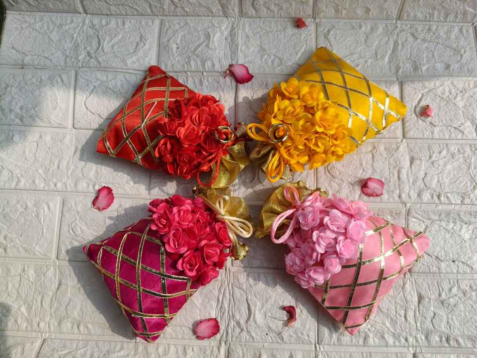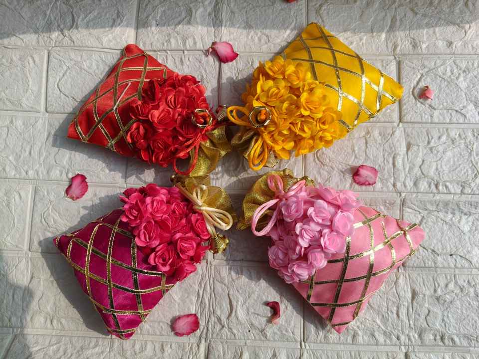 กระเป๋าผ้ากำมะหยี่ทำมือลายดอกไม้ เป็นมิตรกับสิ่งแวดล้อม แบบมีเชือกผูก ใส่เหรียญ เครื่องประดับ ของชำร่วยงานฮาลดี งานจั๊กโก งานอีด งานกลางคืน