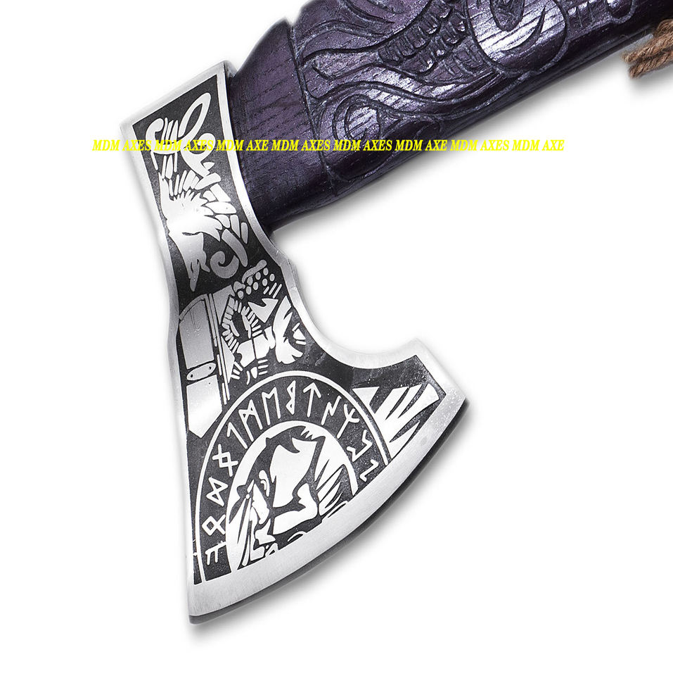 ขวานอีกาไวกิ้งทำด้วยมือขวานเหล็ก5160ปลอกหนังสวยงามด้ามจับเชือกแกะสลักแบบตามสั่ง