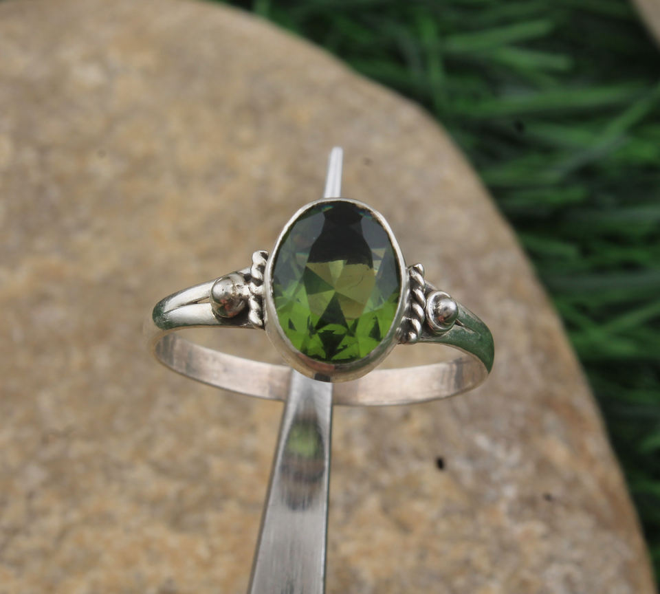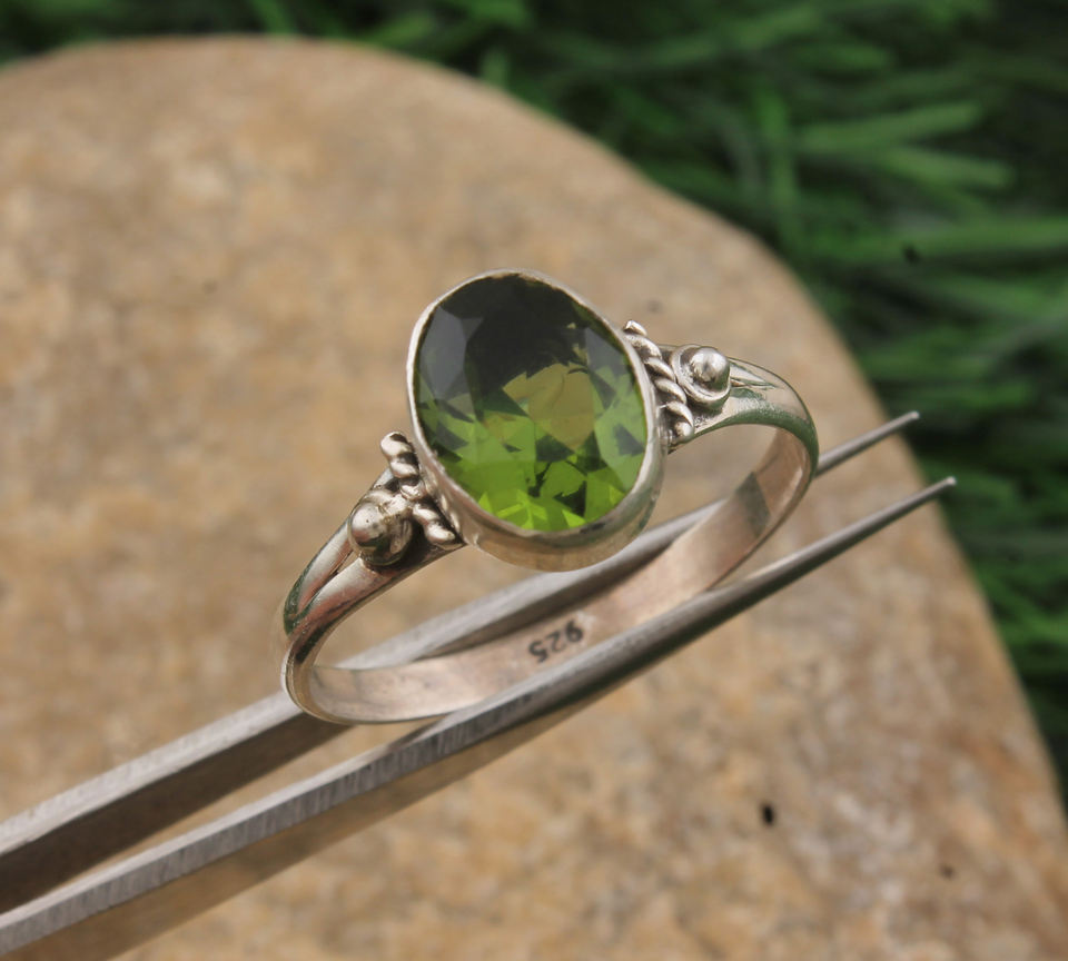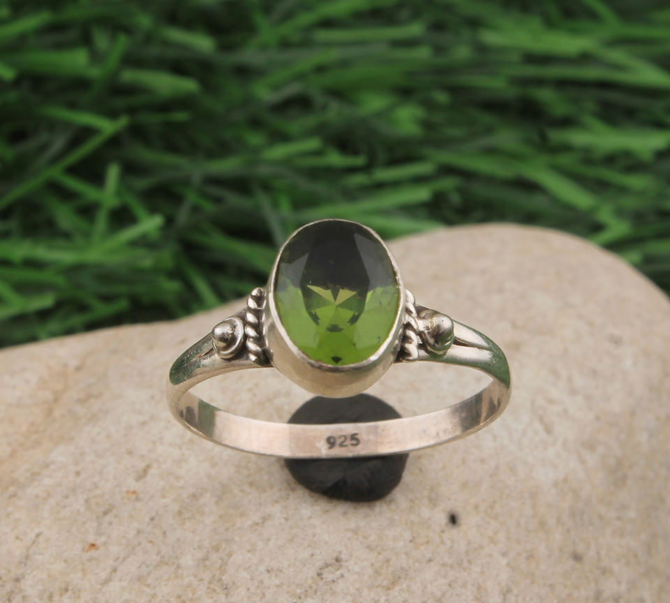 แหวนแต่งงานสไตล์วิคตอเรียนโบราณทำมือจากเงินแท้ 925 ประดับพลอยเพอริดอทดิบ สำหรับเป็นของขวัญสำหรับผู้หญิง
