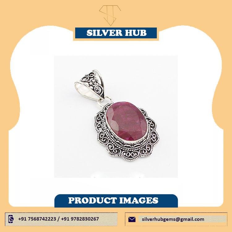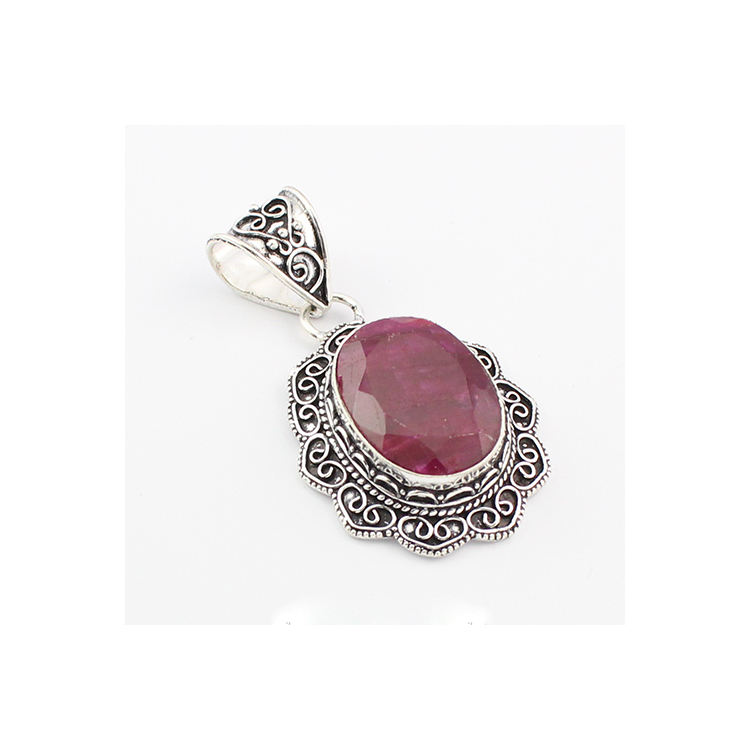 จี้ทับทิมเงินสเตอร์ลิง925วินเทจทำด้วยมือเครื่องประดับเงินที่สวยงามและมีฐานหนามเตยสำหรับผู้หญิง