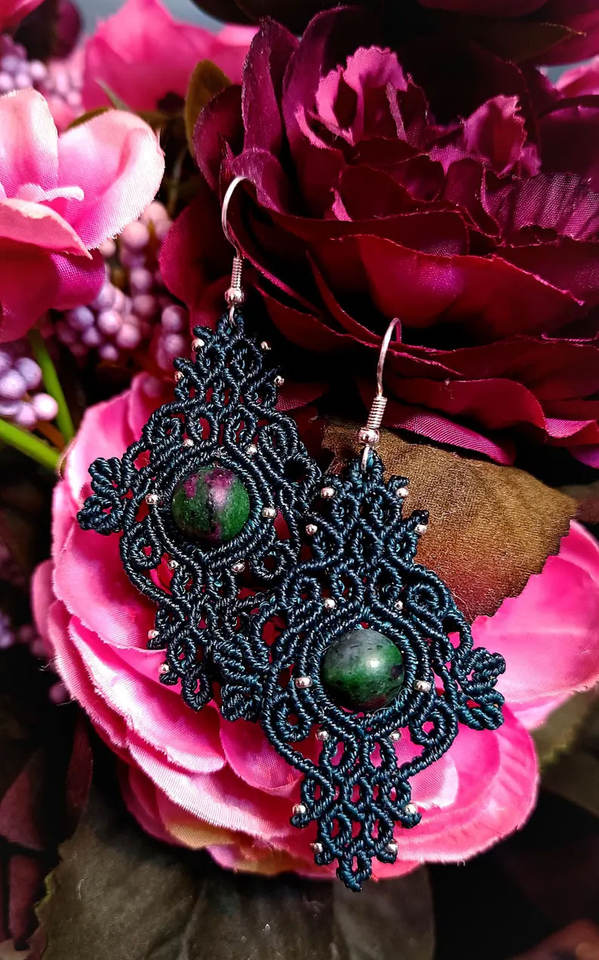 ต่างหูห้อยประดับพลอยรูบี้โซไซต์สีดำสไตล์วินเทจทำมือ งานฝีมือโบโฮฮิปปี้เก๋ไก๋สำหรับงานปาร์ตี้ ประดับพลอยอะโนไลต์ทรงคาโบชอง ขายส่งเครื่องประดับพลอย