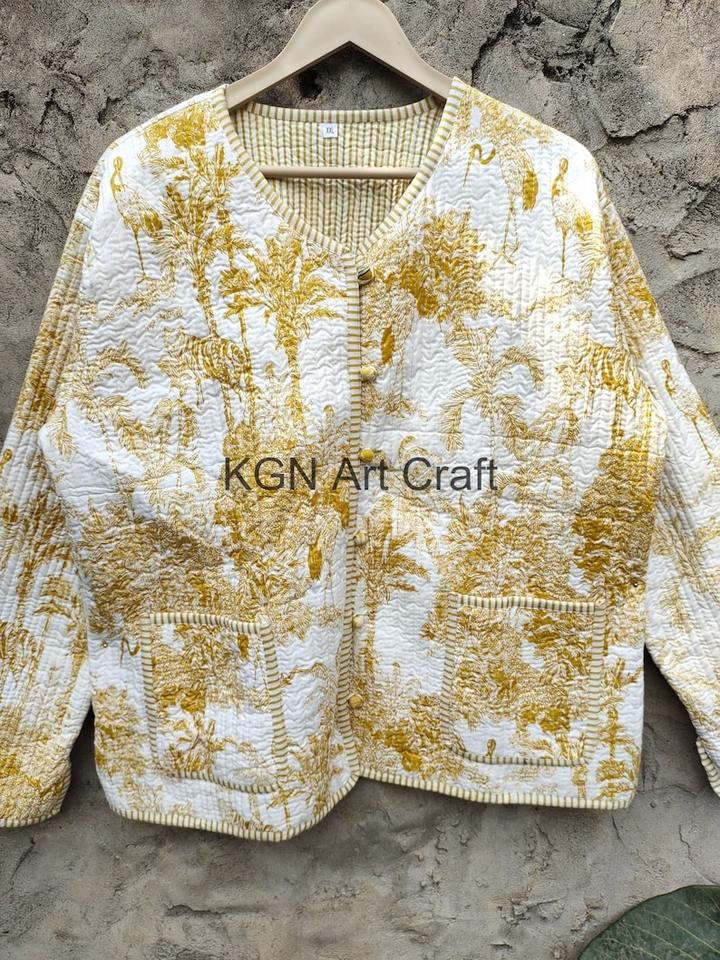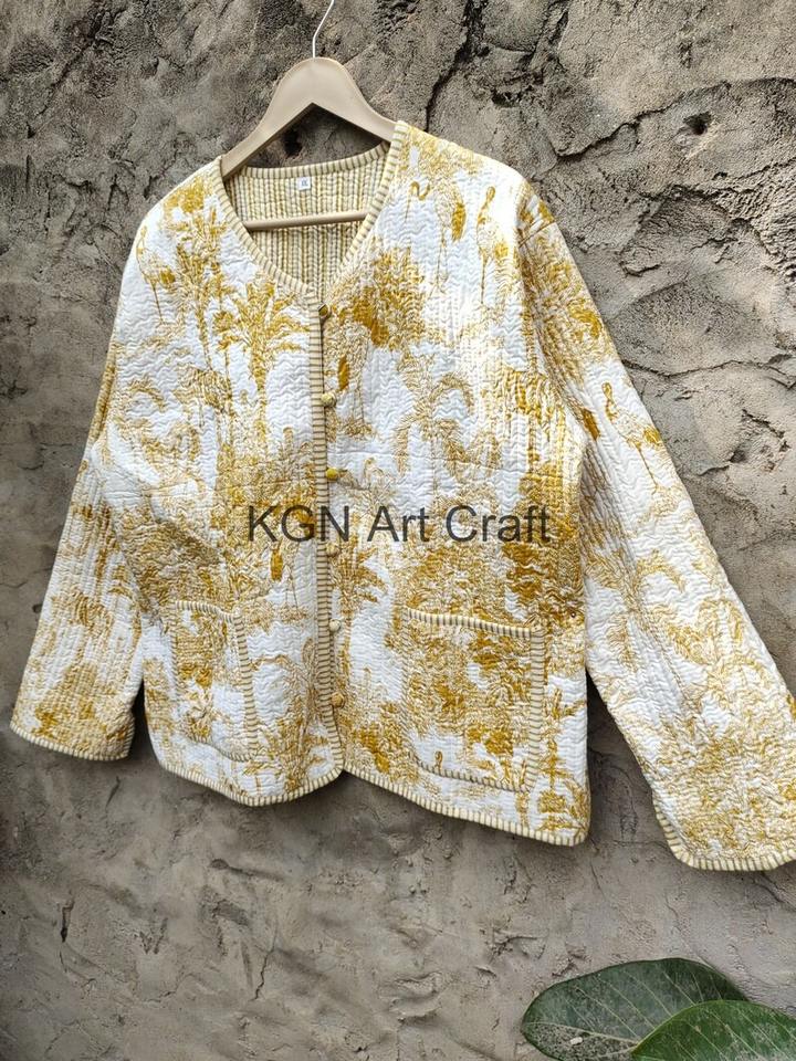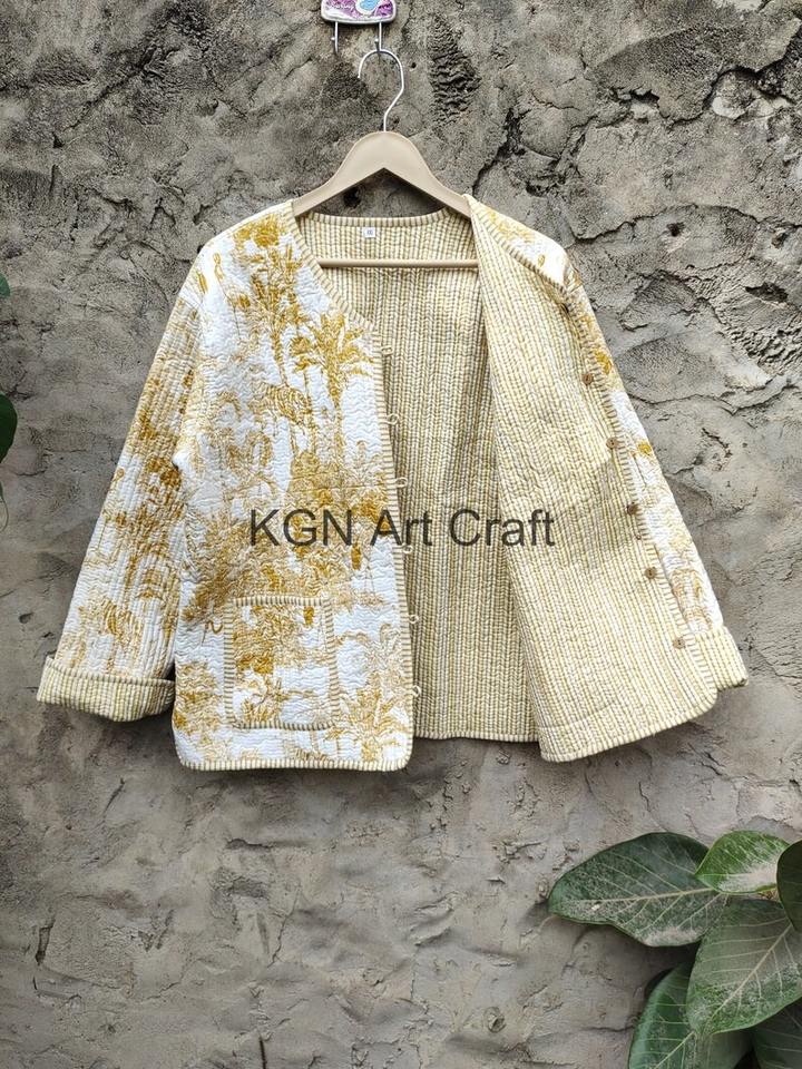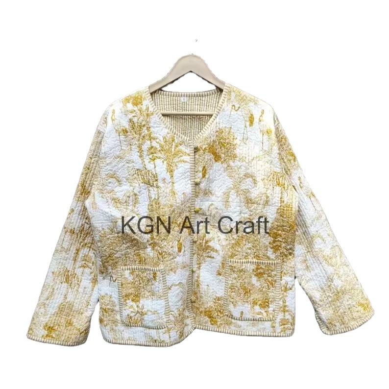 แจ็กเก็ตโบโฮวินเทจทำด้วยมือสำหรับผู้หญิงแจ็กเก็ตผ้าฝ้ายส่าหรีลายตัวอักษร