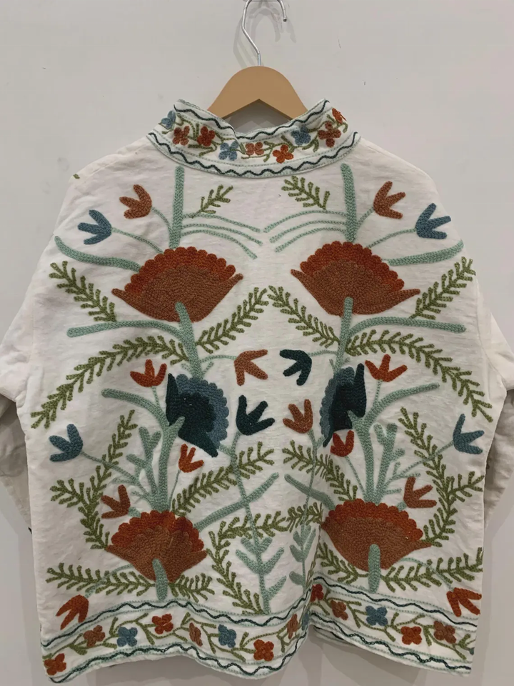 Suzani แจ็กเก็ตฤดูหนาวโบโฮวินเทจทำด้วยมือปักลายดอกไม้ด้วยผ้าฝ้ายเติมเก๋ไก๋สไตล์ชนเผ่าเสื้อโค้ทกำมะหยี่อบอุ่น