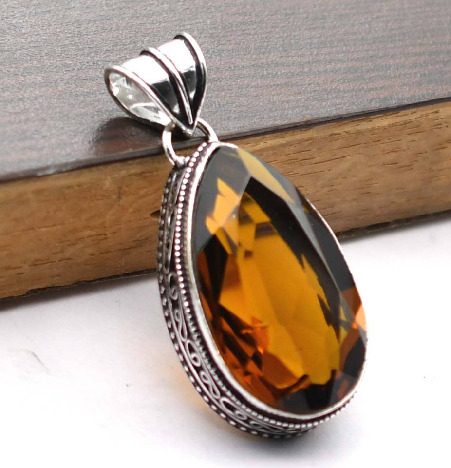 สร้อยคอผู้หญิงทำด้วยมือทองเหลืองวินเทจพร้อมจี้อัญมณีธรรมชาติน้ำผึ้งบุษราคัมธีมคริสเตียนที่กำลังมาแรงสำหรับงานเลี้ยงแฟชั่น