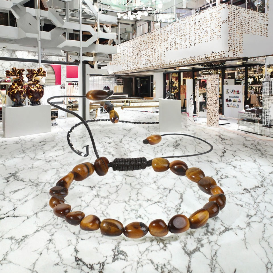 กำไลหินธรรมชาติทรงเรขาคณิตสไตล์วินเทจทำมือ ประดับด้วยลูกปัดไทเกอร์อายแบบด้านและอัญมณีอาเกต พร้อมเชือกยางยืด เหมาะสำหรับเป็นของขวัญ