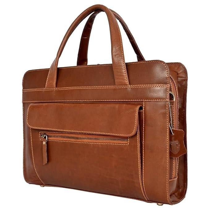กระเป๋าเอกสารหนังวินเทจทำมือสำหรับเดินทางและทำงานคู่หูที่ทนทานหนังแท้