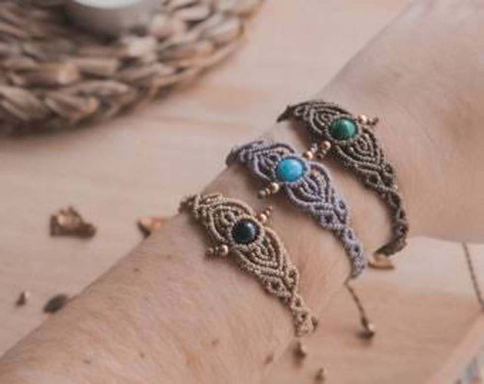 สร้อยคอมาคราเม่ทำมือสไตล์วินเทจ ลูกปัดหินผสมขนาด 8 มม. พร้อมจี้ห้อยและสายเชื่อม สำหรับเป็นของขวัญงานแต่งงาน
