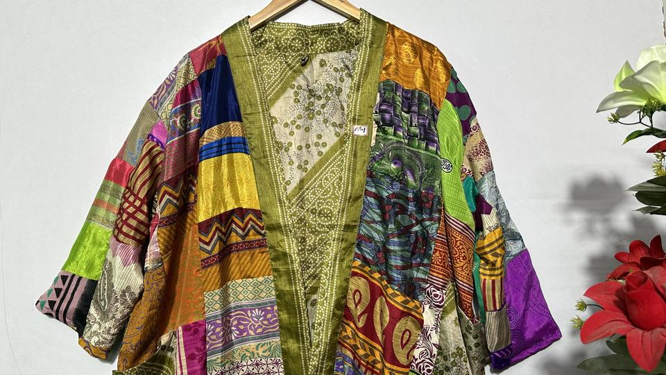 ชื่อผลิตภัณฑ์:กิโมโนผ้าไหมเย็บปะติดปะต่อกันทำด้วยมือ