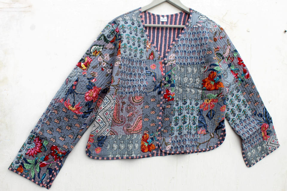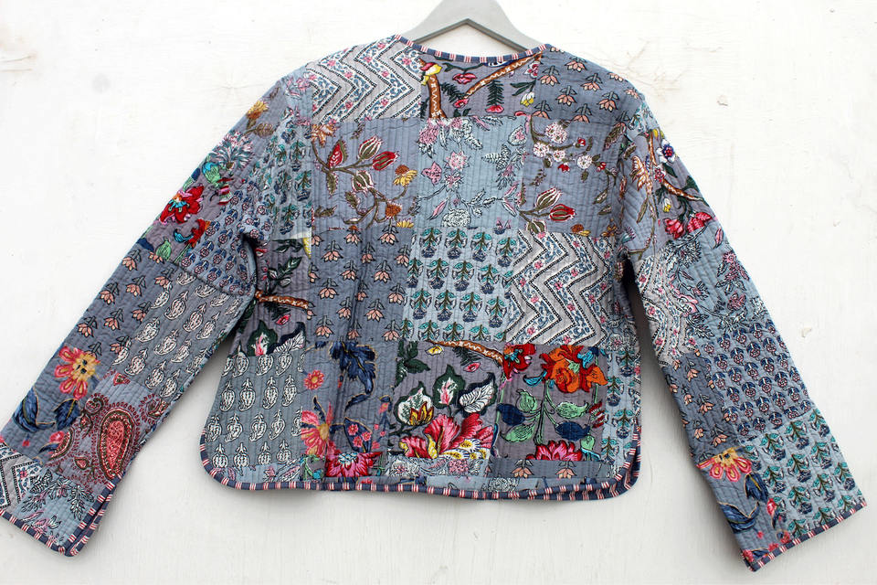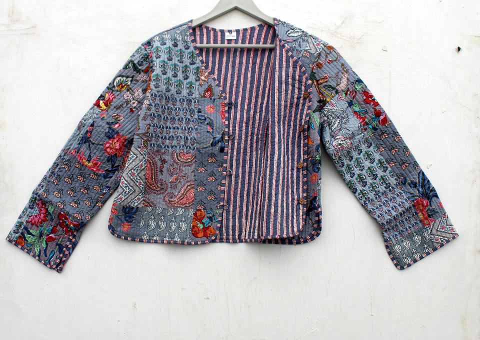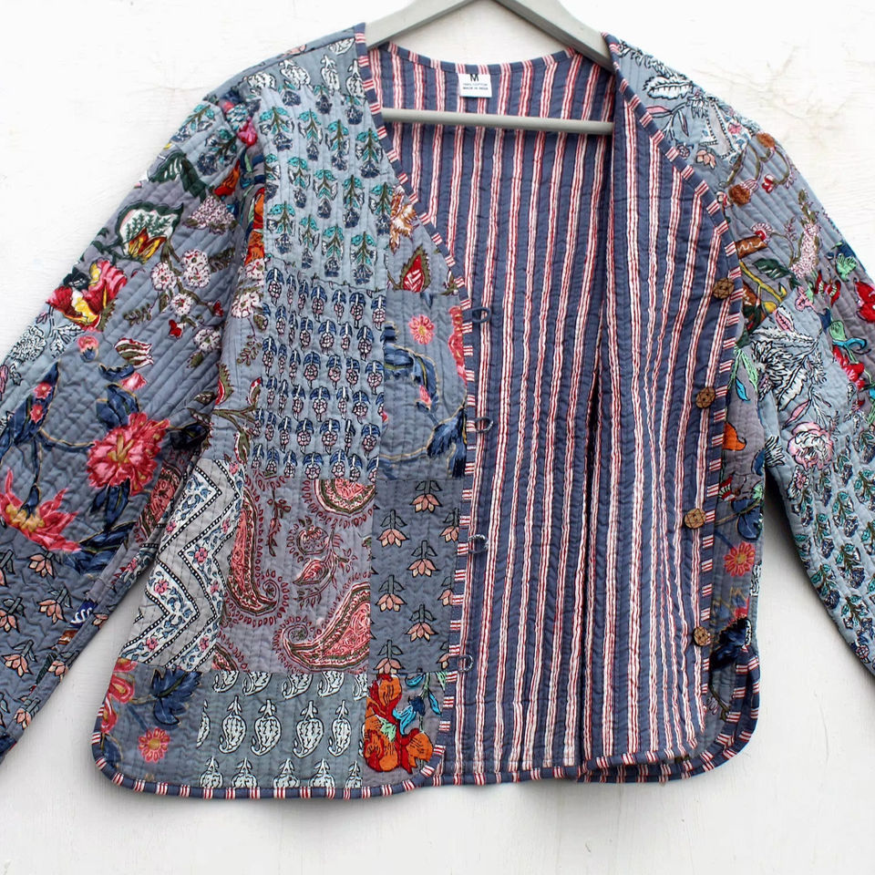 เสื้อแจ็คเก็ตผ้าฝ้ายควิลท์ทำมือสไตล์วินเทจ เสื้อแจ็คเก็ตแขนยาวผ้าฝ้ายสไตล์วินเทจจากเมืองชัยปุระ