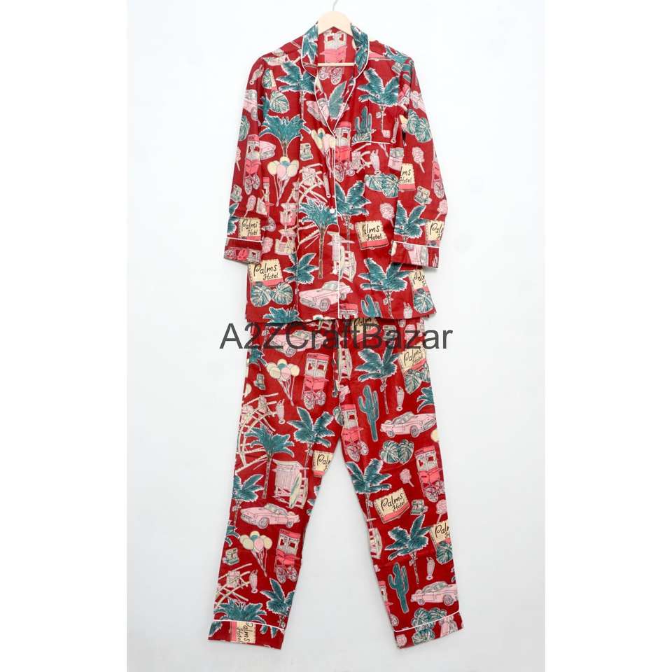 ชุดนอนผู้หญิง 2 ชิ้น ผ้าฝ้าย 100% ลายดอกไม้ คลาสสิก โรแมนติก วินเทจ ทำมือ เอวยางยืด แขนยาว