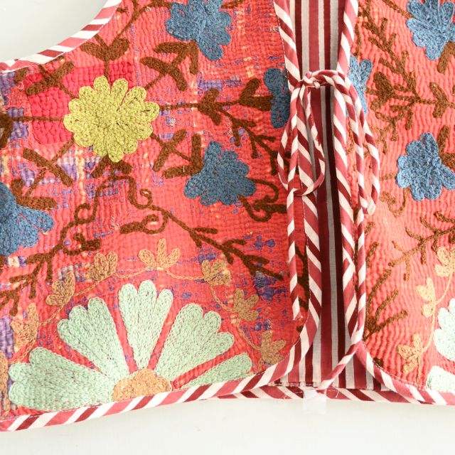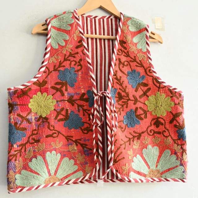 เสื้อกั๊กผ้าฝ้ายแขนกุดวินเทจทำด้วยมือสำหรับผู้หญิงแจ็กเก็ตกันนอกสั้นปักลายสุอานิหรูหรา