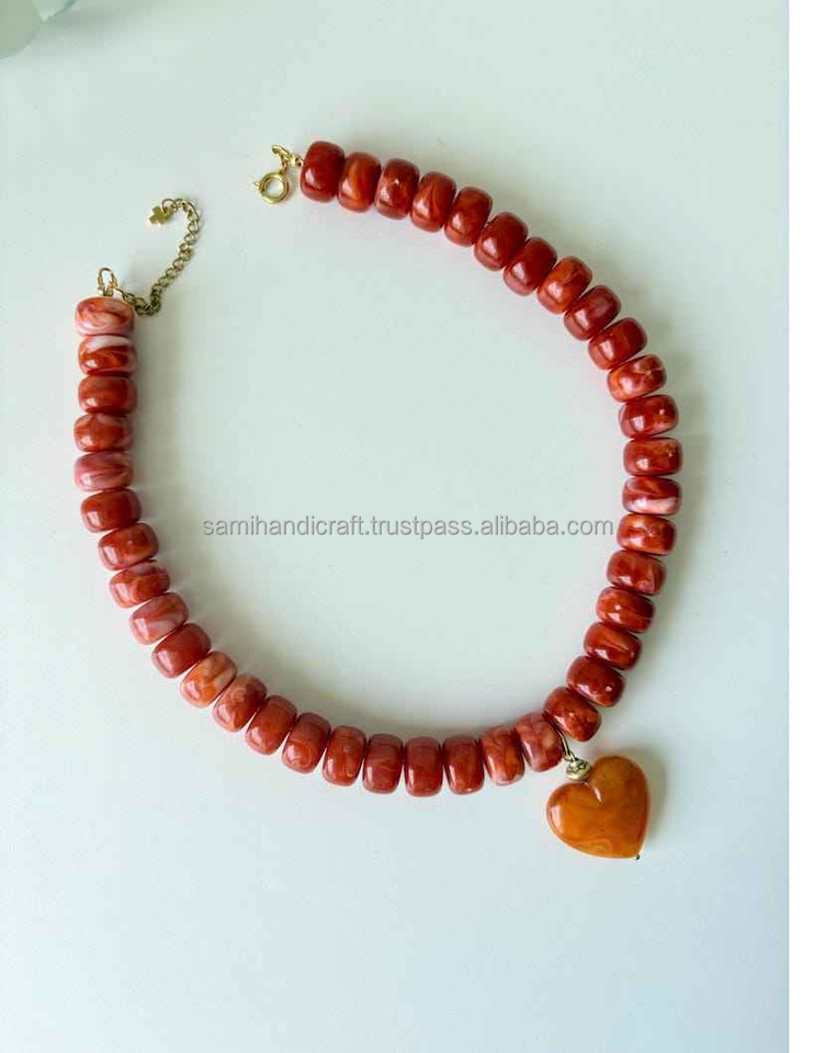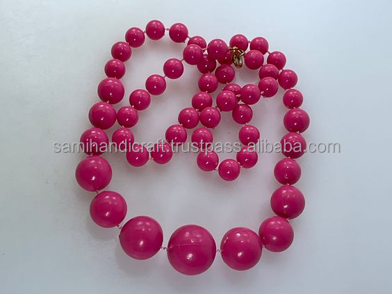 สร้อยคอลูกปัดแบบหนาสไตล์วินเทจทำด้วยมือดีไซน์ลูกปัดเรซินกลมสง่างามรูปทรงตะขอที่ทนทานสำหรับของขวัญวันครบรอบ