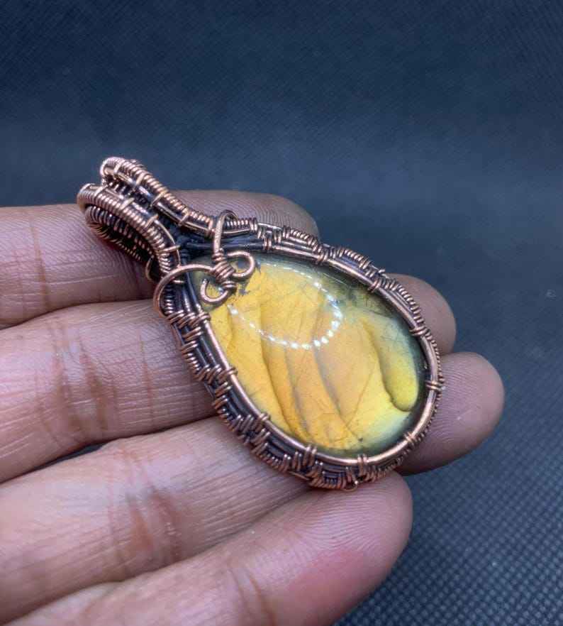 สร้อยคอจี้อัญมณีลาบราดอไรต์สไตล์วินเทจทำด้วยมือลวดทองแดงโบราณห่อของขวัญวันเกิดที่ไม่เหมือนใครไอเดีย