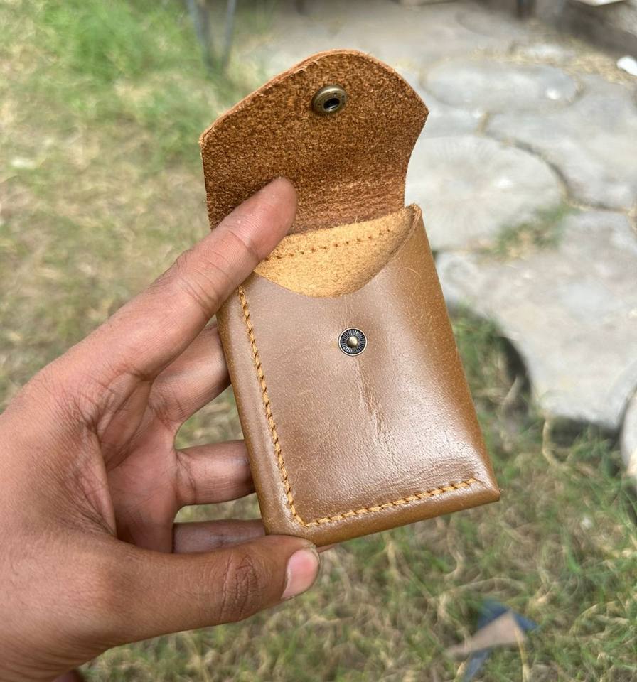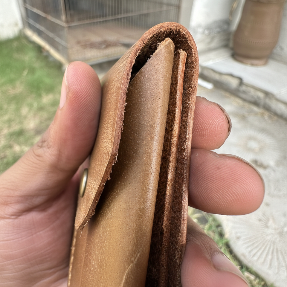 กระเป๋าสตางค์หนังสองพับแบบพับได้ทำจากหนังแวกซ์สไตล์วินเทจทำด้วยมือมีปุ่มเปิด