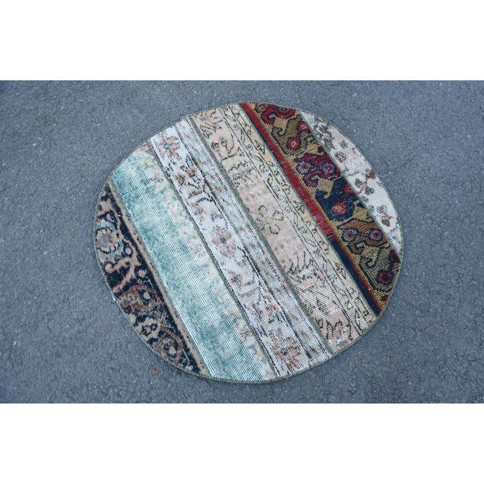 พรมขนแกะตุรกีวินเทจทำด้วยมือ2.9x2.9ft ดีไซน์ปะต่อสีเบจคลาสสิกพรมกำมะหยี่หนุนหลังยางสำหรับห้องนั่งเล่นห้องโถง