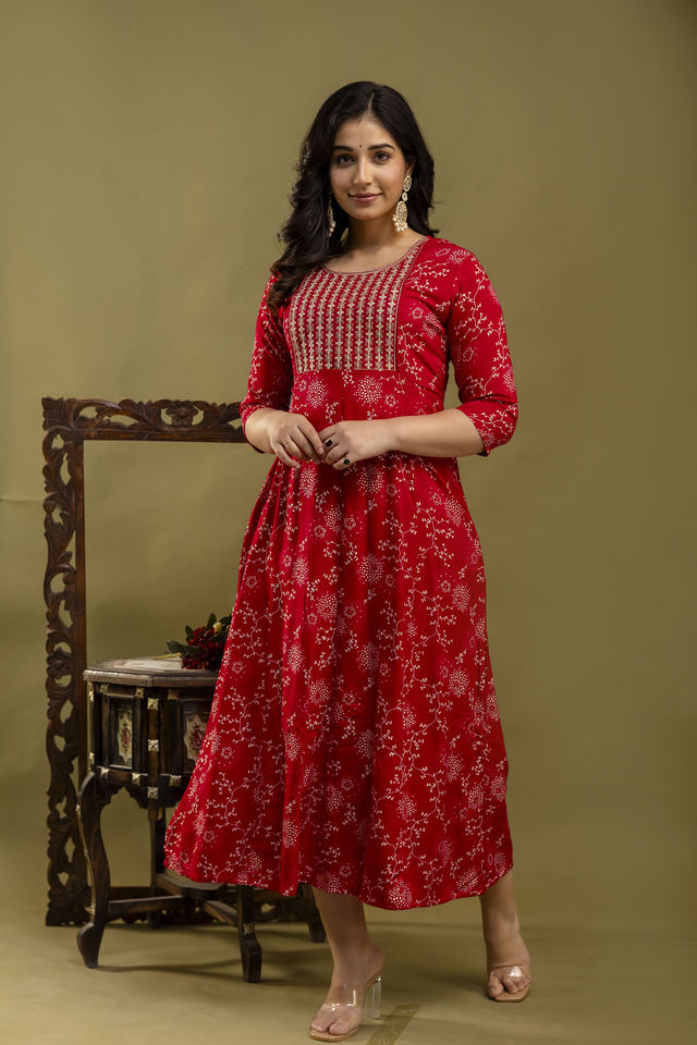 Viscos ทำด้วยมือชุดเดรสลำลองเอวผ้าทอพิมพ์ลายดิจิทัลแท็บบบีทำด้วยมือปักด้วยมือธรรมชาติซักได้