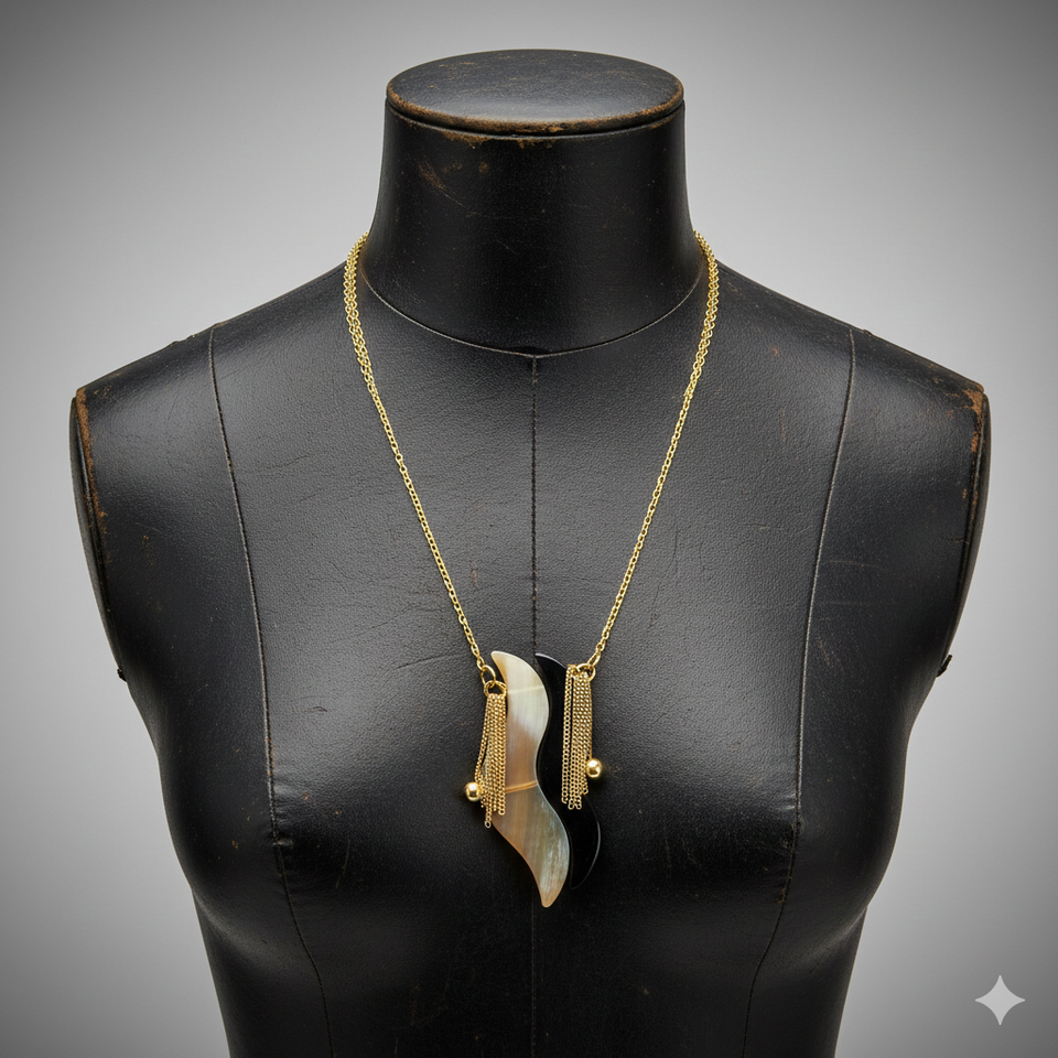 จี้ทำมือรูปวัลไพน์มาเจสตี้จากเขาสัตว์ผสมผสานกับเขาควายและเขากระทิงแบบนามธรรม เชื่อมด้วยลวดทองเหลือง