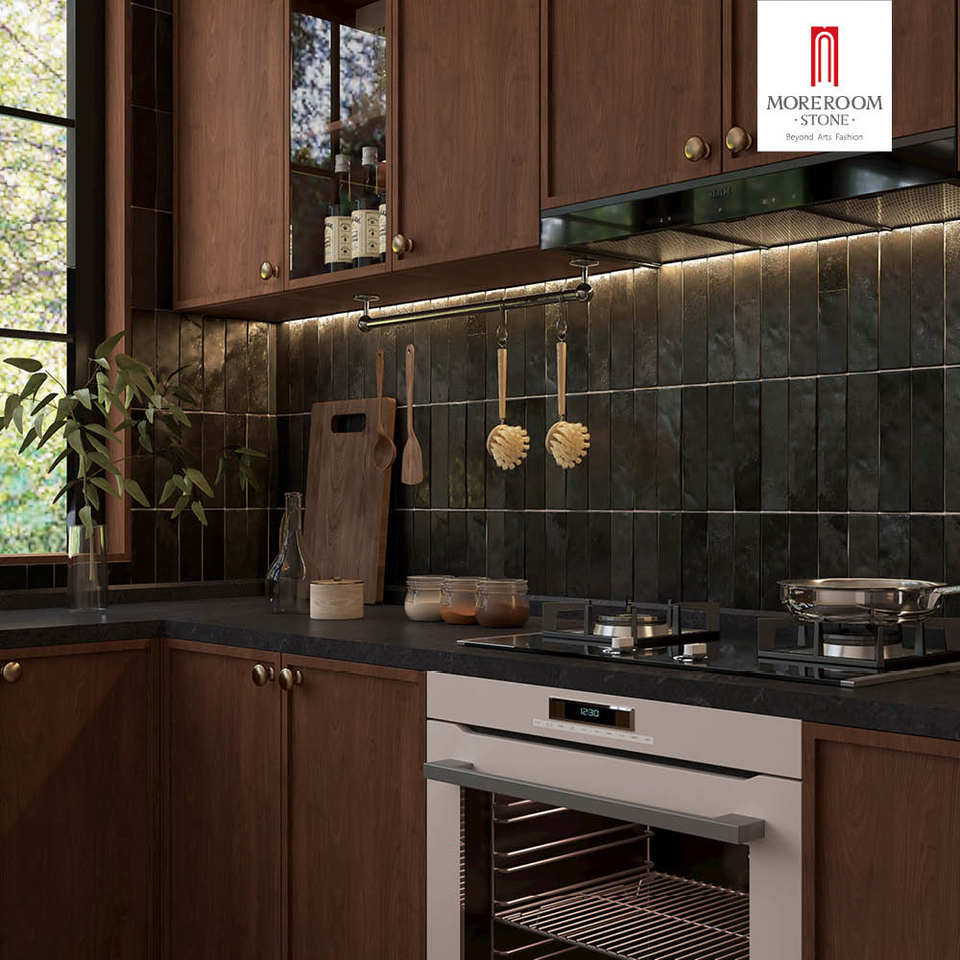 กระเบื้องติดผนังทำมือสีดำเมทัลลิก กระเบื้องแฮนด์เมดสำหรับห้องครัวสไตล์ลอฟท์อุตสาหกรรมและตกแต่งภายในสำนักงานสมัยใหม่