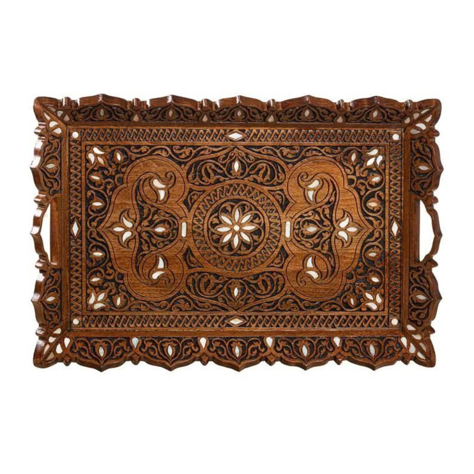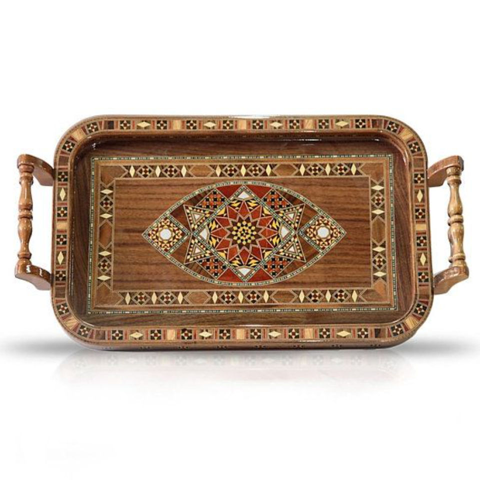 ถาดเสิร์ฟไม้วอลนัททำมือสไตล์โมร็อกโก ประดับมุกและโมเสก ถาดตกแต่งโต๊ะกาแฟ จานตกแต่ง