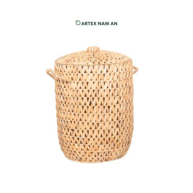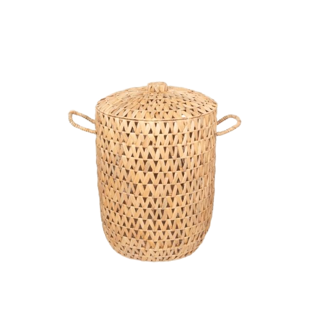 ตะกร้าซักผ้าผักตบชวาทำด้วยมือตะกร้าใส่เสื้อผ้าสานเป็นมิตรต่อสิ่งแวดล้อม