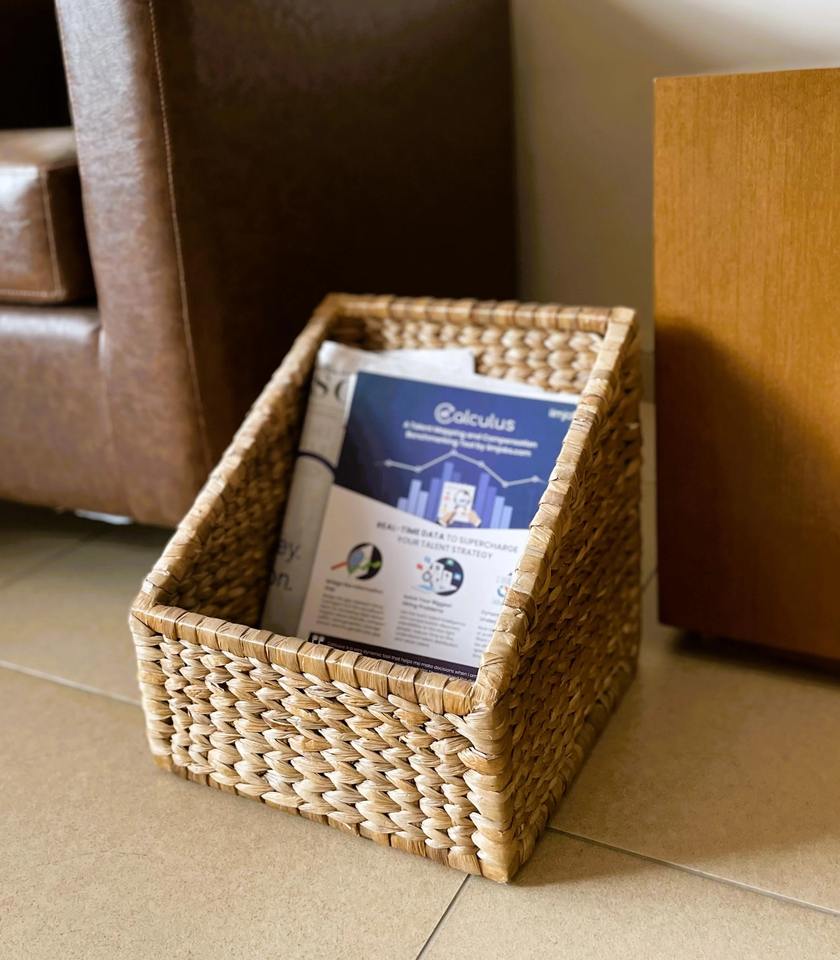 ตะกร้าใส่แมกกาซีนผักตบชวาทำมือ