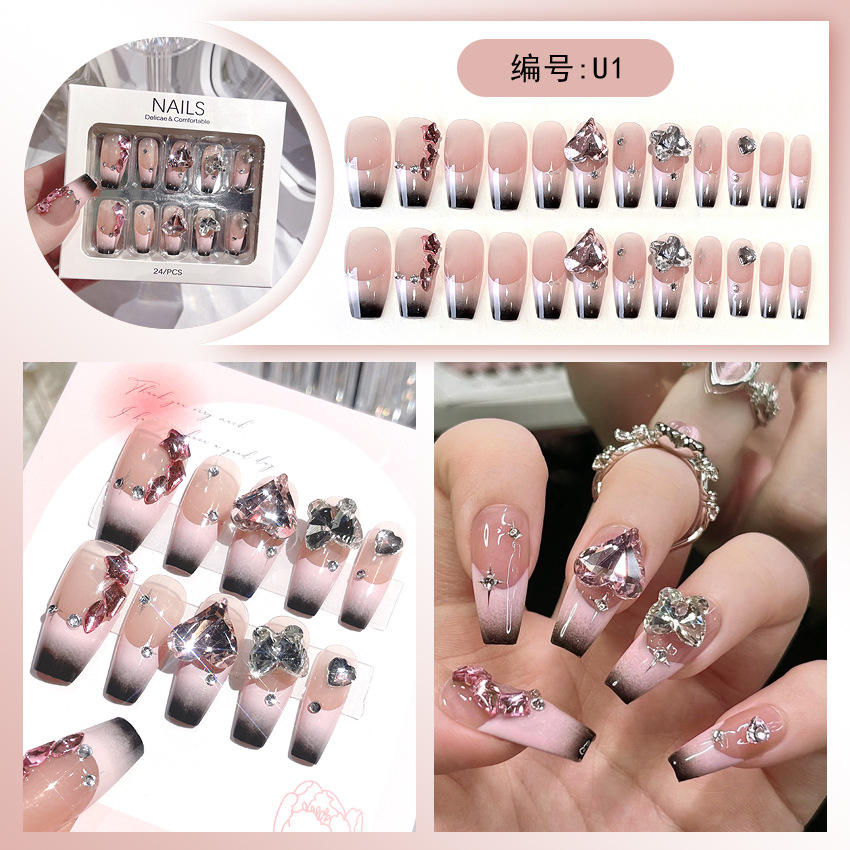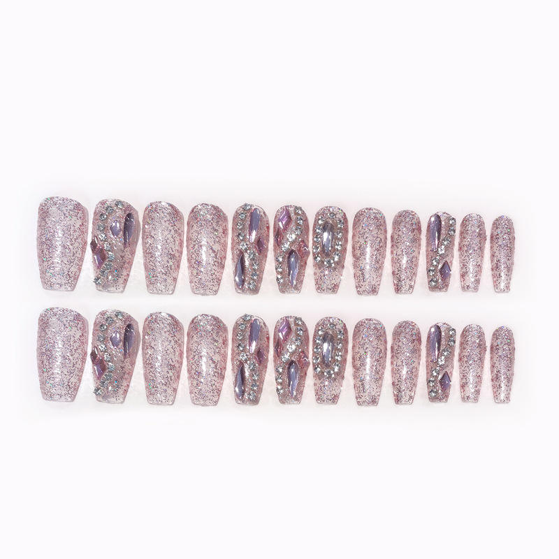 เล็บปลอมขนาดใหญ่ติดเพชรแบบฝรั่งเศสปลายแหลมบริสุทธิ์สวมใส่และสวมใส่ทำด้วยมือ