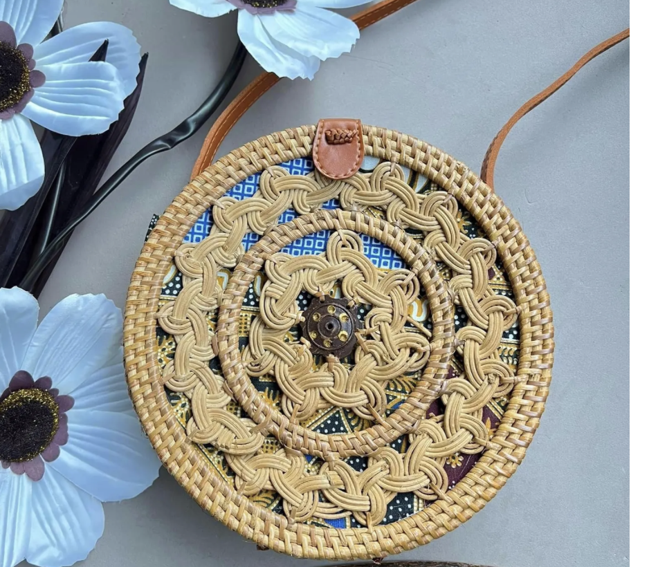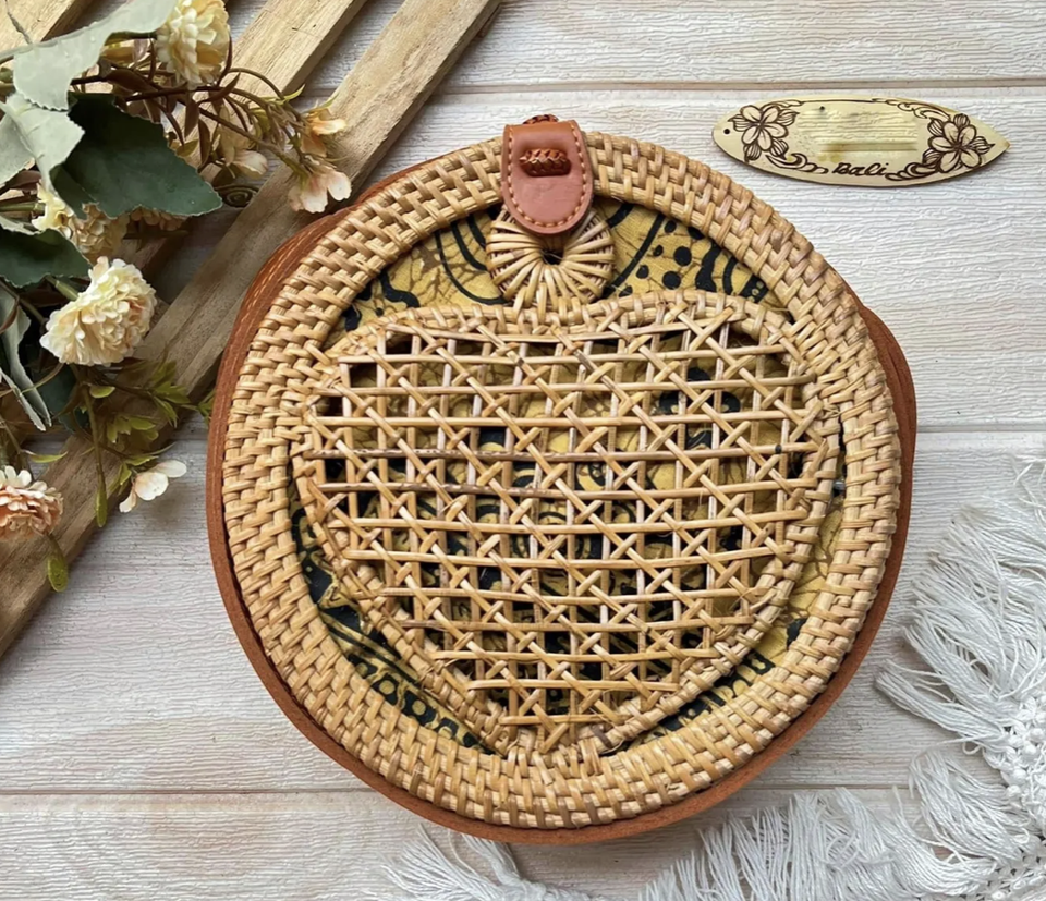 กระเป๋าสะพายไหล่ทำด้วยมือทำจากไม้ไผ่สานลายดอกไม้คลาสสิกสำหรับผู้หญิงดีไซน์ใหม่