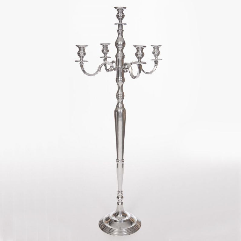 เชิงเทียน5แขนสำหรับงานแต่งงานทำด้วยมือเชิงเทียนสีเงินขัดเงาและโลหะสีทองและเชิงเทียนแบบตั้งขายส่ง