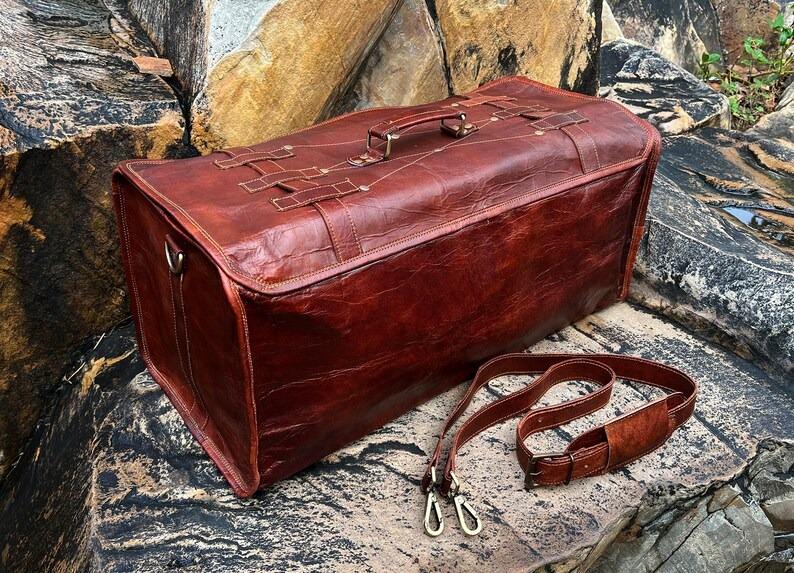 กระเป๋าหนังสำหรับผู้ชายกระเป๋าเดินทางแบบดัฟเฟิลทำมือสำหรับไปยิมวันหยุดพักผ่อน